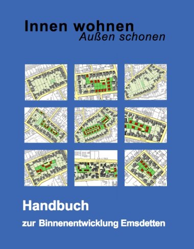 Qualifiziert wird der Orientierungsrahmen durch das Handbuch zur Binnenentwicklung Emsdetten. Damit liegen für die Umsetzung der einzelnen Ziele grundlegende Daten, Innenentwicklungspotenziale sowie konkrete Handlungsanweisungen für fünf unterschiedliche Typen von Baublöcken vor. Zudem werden konkrete Verfahrensschritte für eine konsensorientierte Planung vorgeschlagen. 15 Spielregeln beschreiben den Handlungsrahmen.