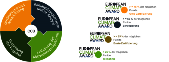 Der European Energy Award (eea) und der European Climate Adaptation Award (eca) sind Zertifizierungsverfahren die europaweit Kommunen bei der Etablierung, Umsetzung und dem Controlling von Prozessen unterstützen. Der eea deckt dabei die Themenschwerpunkte Klimaschutz und Energie, der eca die Themen Klimafolgenanpassung und Klimawandel ab.