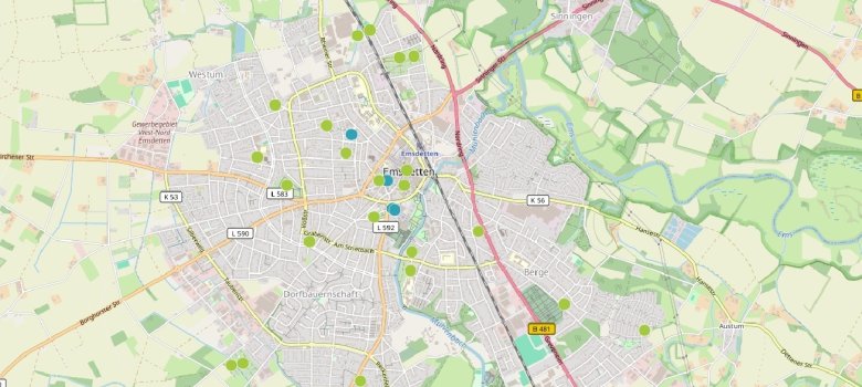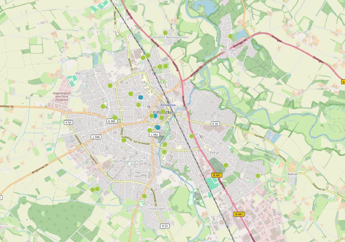 In der Stadt Emsdetten gibt es neben mehreren privat betriebenen Wetterstationen auch über ein Dutzend Einzelsensoren, mit denen die Temperatur an verschiedenen markanten Punkten im Stadtgebiet gemessen wird. Im Folgenden finden Sie die Übersicht.