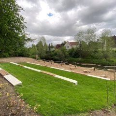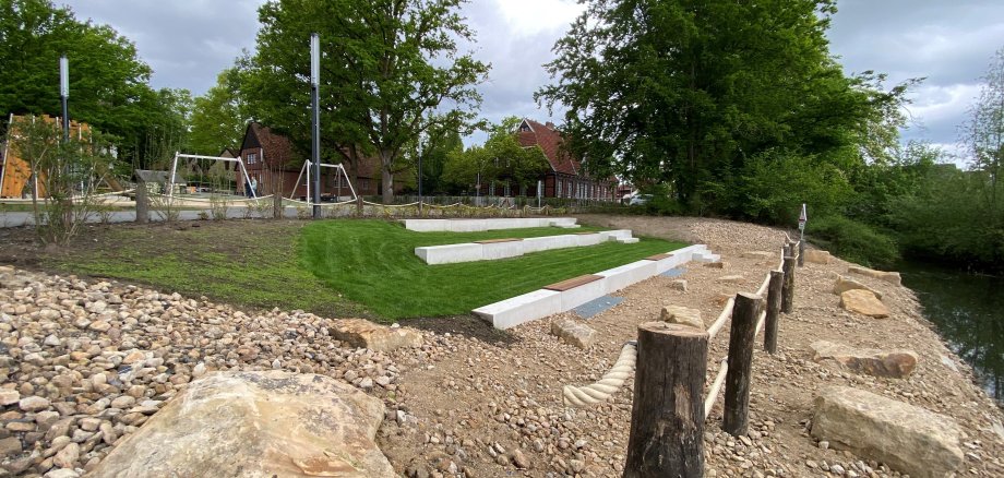 Auch die Pflanzmaßnahmen in diesem Bereich sind inzwischen abgeschlossen. Die insektenfreundlichen Stauden und Sträucher sind bereits gut angewachsen, sodass der neugestaltete Bereich ab sofort als attraktiver Naherholungsort genutzt werden kann. Da Gewässer immer auch eine gewisse Gefahr bergen, bittet die Stadt Eltern und Begleitpersonen, entsprechend ihrer Aufsichtspflicht Kinder nicht unbeaufsichtigt im Bereich des Mühlenbachs spielen zu lassen. Der Bereich ist mittels Anpflanzungen, dem bewusst eingeschränkten Zugang vom Weg aus mit den gespannten Seilbarrieren so angelegt, dass die Nähe zum Bachlauf sehr gut visuell erkennbar und erfahrbar ist, die Uferkante selbst aber nicht direkt begangen werden kann.