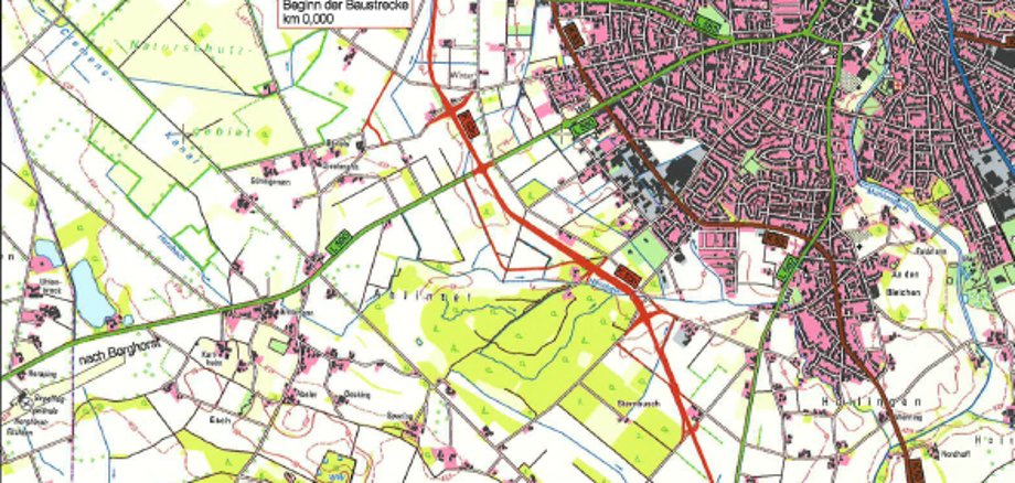 In den Planunterlagen für die K 53 n Westumgehung ist jetzt das Verkehrsgutachten überarbeitet worden, zudem wurden auch der Landschaftspflegerische Begleitplan und der artenschutzrechtliche Fachbeitrag aktualisiert und ergänzt. Die Planunterlagen liegen jetzt erneut von Montag, 07. Juni 2021 bis Dienstag, 06. Juli 2021 zur allgemeinen Einsicht im Rathaus aus. Zudem sind sie auch im Internet unter www.brms.nrw.de/go/verfahren (Stichwort: K 53n, Westumgehung Emsdetten) zu finden.