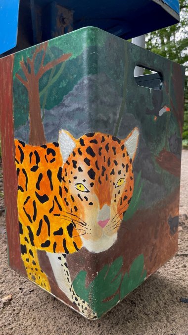 Das heißt: Die Abfallbehälter wurden gereinigt und von den Kindern und Jugendlichen mit bunten Tiermotiven bemalt. Zum Ende des Projekts wurden die Mülleimer der Stadt Emsdetten übergeben, sodass der Baubetriebshof diese nun im Stadtpark installiert hat.