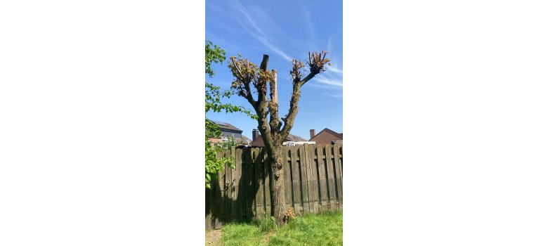 Bei einem Ahorn wurde ein massiver Kronenrückschnitt vorgenommen. Dieser Baum muss vermutlich entnommen werden.