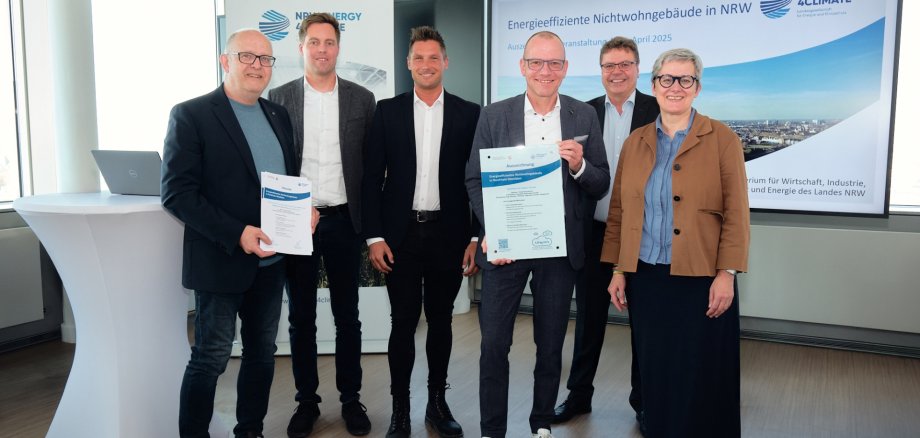 Das Emsdettener Bauvorhaben gehört damit zu den insgesamt nur sieben Projekten, die vom Wirtschafts- und Klimaschutzministerium gemeinsam mit der Landesgesellschaft NRW.Energy4Climate als nachahmbare Vorbilder gewürdigt wurden. Die Sanierung und Erweiterung der Kardinal-von-Galen-Schule erfüllt hohe Anforderungen an Energieeffizienz und berücksichtigt ganzheitliche Nachhaltigkeitsaspekte. Zudem wird das Gebäude, welches 2028 planmäßig fertiggestellt wird, nach dem sogenannten QNG-Siegel (Qualitätssiegel Nachhaltiges Gebäude) zertifiziert. Im Verfahren überzeugte die Kardinal-von-Galen-Schule insbesondere durch die nachhaltige Energieplanung: Ein großer Teil des Energiebedarfs wird durch eine 100 Kilowatt-Peak große Photovoltaik-Anlage gedeckt.