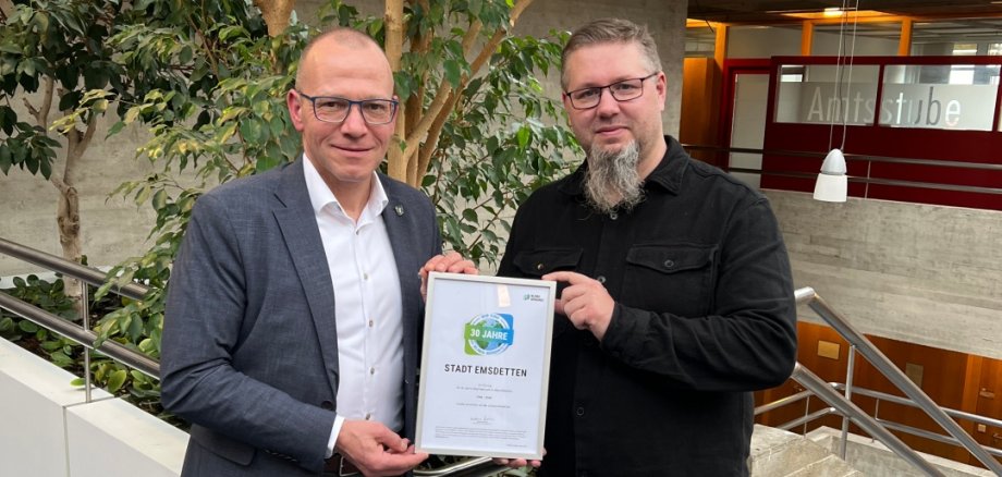 „Die langjährige Mitgliedschaft im Klima-Bündnis zeigt das hohe Engagement in Emsdetten für den Klimaschutz. Seit über 30 Jahren übernehmen wir Verantwortung für unsere Stadt, für kommende Generationen und eine lebenswerte Zukunft“, freut sich Bürgermeister Oliver Kellner über die Auszeichnung.