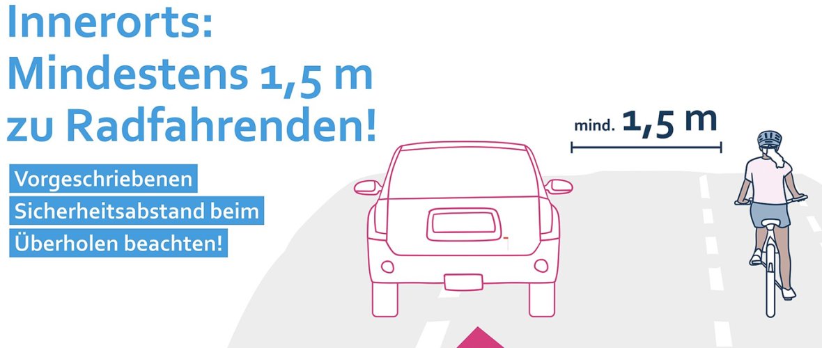 - Wer einen Radfahrenden oder zu Fuß Gehenden überholt, muss innerorts einen Abstand von 1,5 m einhalten.