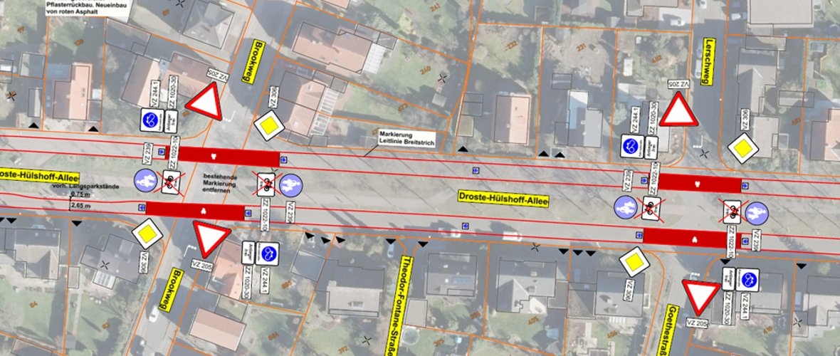 Planung der Strecke als Beispiel an der Droste-Hülshoff-Allee Ecke Brookweg