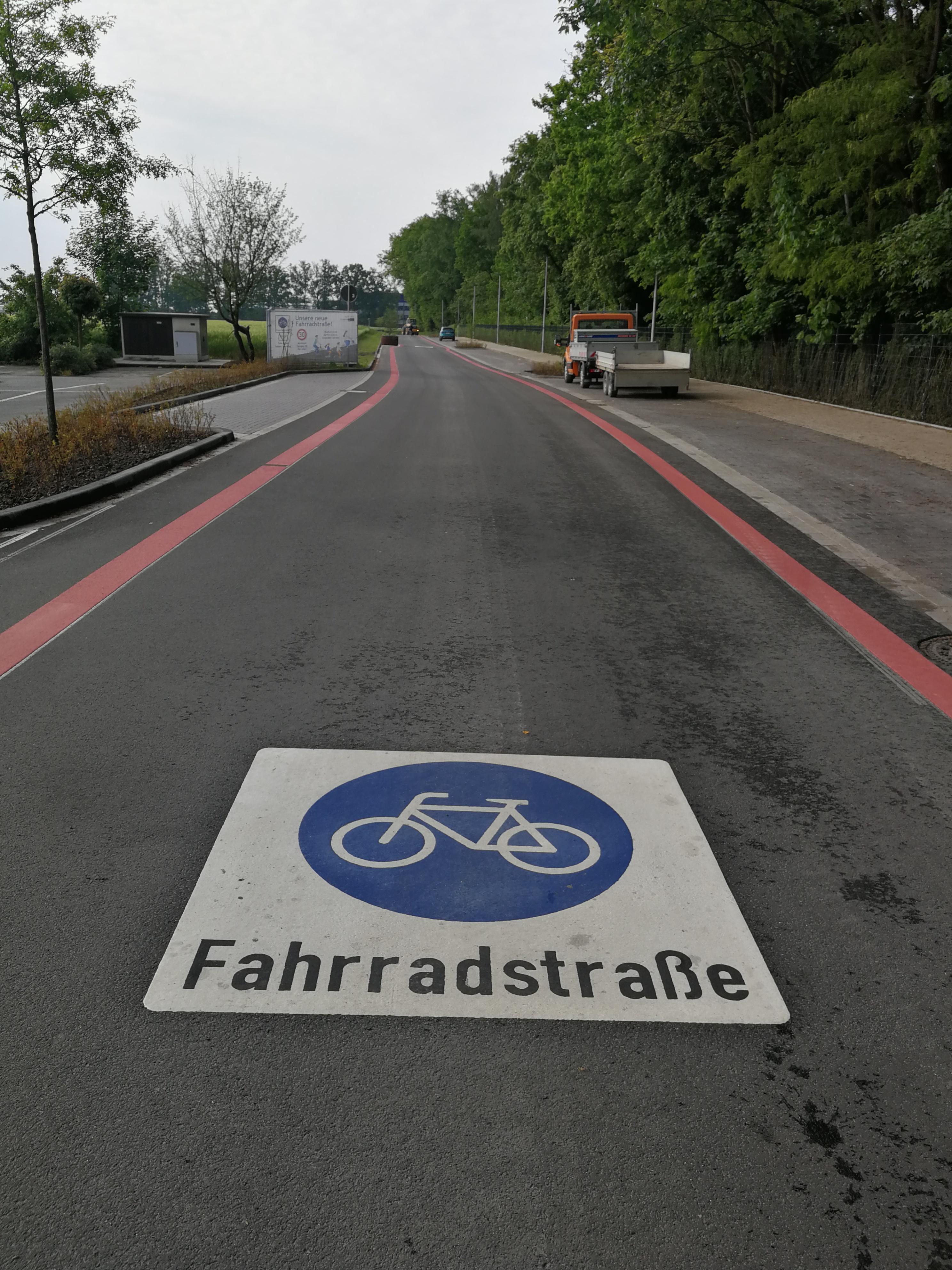Durch die Kennzeichnung einer Straße als Fahrradstraße wird eine Fahrbahn vorrangig dem Radverkehr zur Verfügung gestellt. Dies bedeutet, dass die gesamte Fahrbahn zum Radweg wird. Dadurch wird für den Radverkehr eine attraktive Verbindung geschaffen, auf der er Vorrang genießt. Fahrradstraßen werden in der Regel für den Kfz – Verkehr freigegeben, damit die Zufahrt zu den Grundstücken weiterhin mit dem Auto gewährleistet ist. Dies geschieht entweder über das Zusatzzeichen „Anlieger frei“ oder, wenn zum Verlassen eines Bereichs das Befahren der Fahrradstraße mit dem Pkw erforderlich ist, mit dem Zusatzzeichen „Kfz frei“. Weitere Informationen finden Sie im Flyer zu Fahrradstraßen.