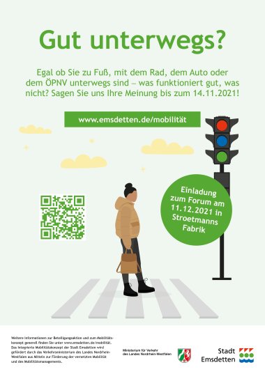 Ob zu Fuß, mit dem Rad, dem Bus, der Bahn oder dem Pkw - die Stadt Emsdetten hatte alle Verkehrsteilnehmerinnen und Verkehrsteilnehmer herzlich eingeladen, über einen Zeitraum von sechs Wochen digital am Mobilitätskonzept der Stadt mitzuwirken. Interessierte konnten ihre Ideen und Vorschläge für eine bessere und nachhaltige Mobilität mitteilen sowie auf Verbesserungsmöglichkeiten hinweisen.
