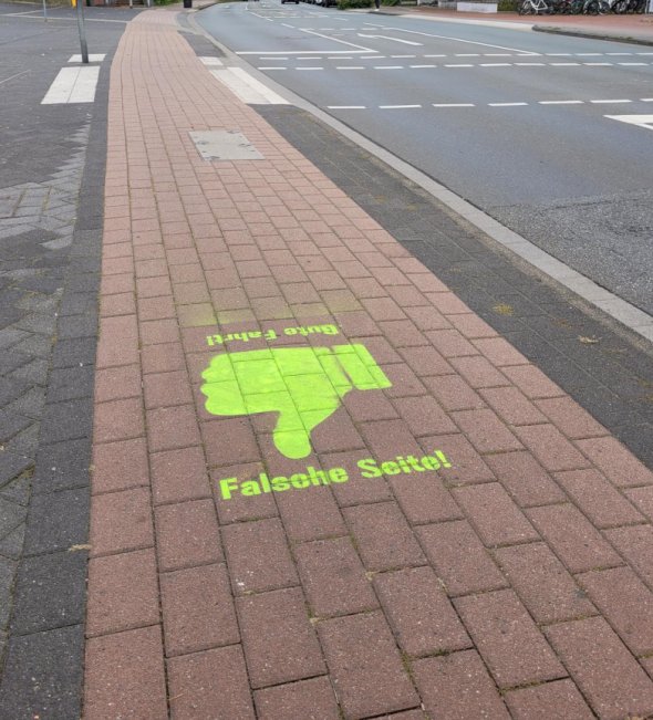- Zu-Fuß-Gehende rechnen ebenfalls nicht mit Radverkehr aus der falschen Richtung. Auch hier kann es in Folge von Kollisionen zu Verletzungen kommen.