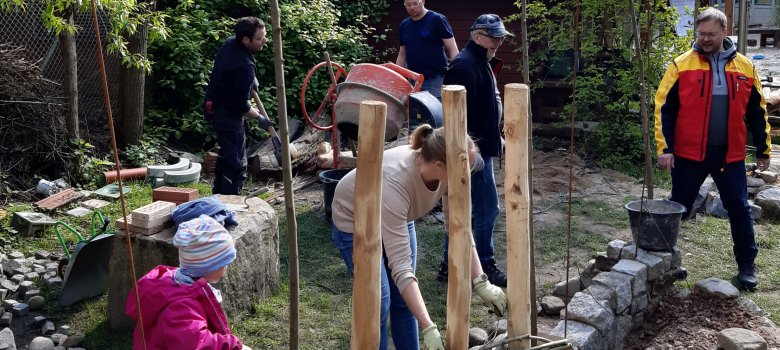 - Die Steine und Ziegel sind größtenteils gespendet und so vor der „Entsorgung“ gerettet und wiederverwertet…