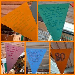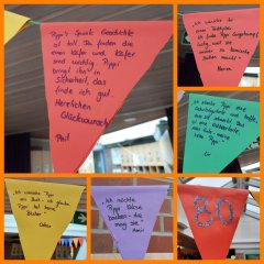 Es entstand eine Geburtstags-Wimpel-Girlande mit den besten Wünschen für Pippi Langstrumpf! Die Kinder hatten tolle Gedanken, was Pippi gebrauchen könnte…