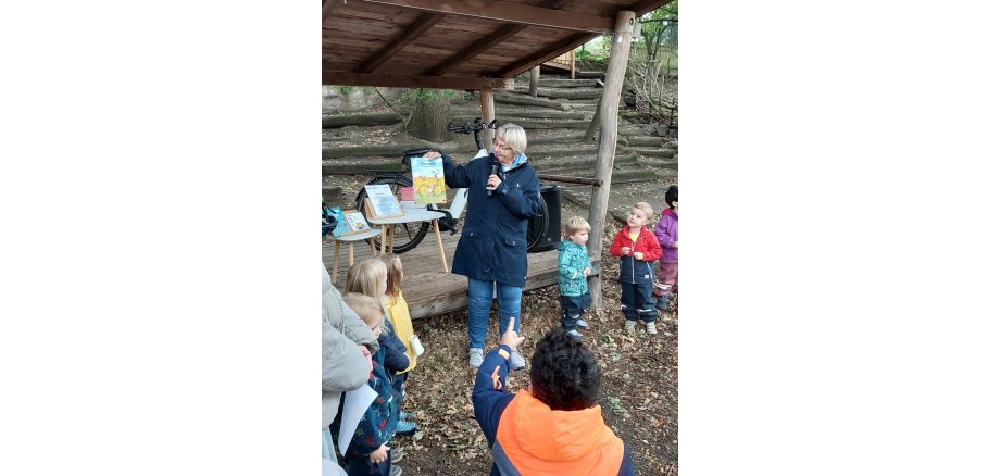 Mit dem Lied „An meinem Fahrrad ist alles dran“ wurde die kleine Sieges-Feier gestartet! Als Überraschung für die Kinder wurden von dem Preis-Geld drei neue Bilderbücher zum Thema „Fahrrad“ gekauft. Diese liegen nun in der Leseecke in der Halle.