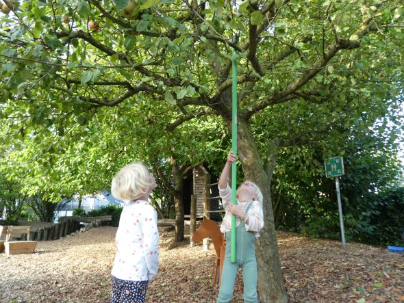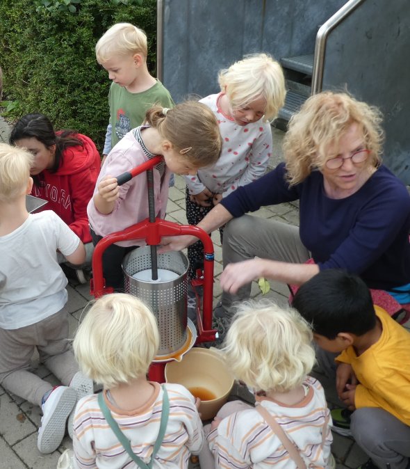 Die Mitarbeiterinnen unterstützen den Forscherdrang der Kinder. Sie gestalten die Spielumgebung der Kinder so, dass sie zur intensiveren Auseinandersetzung anregt und geben ihnen den nötigen Freiraum für vielfältiges Experimentieren.