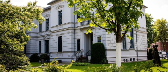 Das Gebäude der Stadtbibliothek besteht aus der historischen Jugendstilvilla Schilgen und einem modernen Anbau aus dem Jahr 1992.