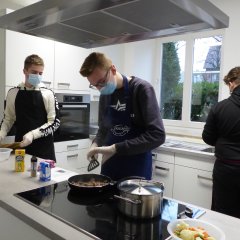Eine Besonderheit der neuen Schulküche der KKS ist ein barrierefreier Arbeitsplatz, der besonders gut von Kindern und Jugendlichen zu nutzen ist, die auf einen Rollstuhl angewiesen sind. Hier wurden ein höhenverstellbarer Herdtisch und Spültisch eingebaut. Auch Mikrowelle und Backofen wurden in einer entsprechend geringeren Höhe angebracht.