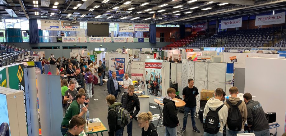 Alljährlich präsentieren sich mehr als 100 Unternehmen auf der großen Berufswahlmesse in der EMS-HALLE. Die Unternehmen können hier ihren Betrieb, ihr Ausbildungsangebot und ihre dualen Studiengänge vorstellen. Jedes Jahr nutzen zahlreiche junge Menschen dieses Angebot, um sich über die verschiedenen Möglichkeiten nach der Schule zu informieren. Eine Unterscheidung zwischen verschiedenen Bildungsabschlüssen findet nicht statt. Am Donnerstagabend können alle Interessierten von 17.00 Uhr bis 19.30 Uhr die Messe besuchen. Am Freitagvormittag besuchen die Jugendlichen die Berufswahlmesse im Rahmen des Schulunterrichts. An beiden Tagen können Unternehmen ihren Betrieb, ihr Ausbildungsangebot und ihre dualen Studiengänge mit einem Messestand vorstellen und den Schülerinnen und Schülern kleine praxisorientierte Aufgaben stellen.