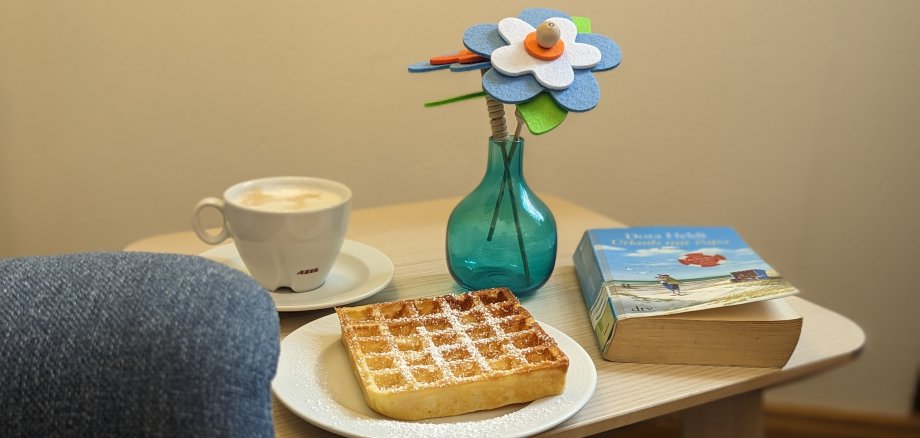Kleine und große Waffelfreunde können es sich dabei im großen Raum gemütlich machen. Neben einer Kinderecke mit Spielzeug, gibt es auch zwei Hochstühle. Bei Sonnenschein wird auch die Terrasse der Stadtbibliothek wieder geöffnet.