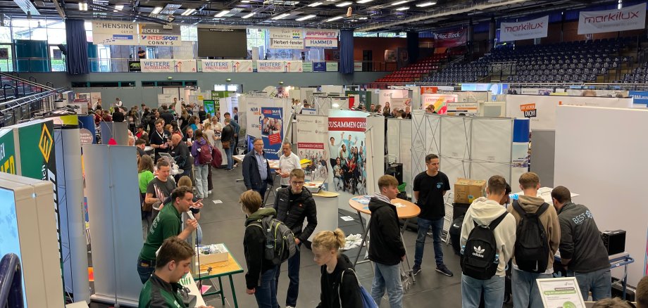 Alljährlich präsentieren sich mehr als 100 Unternehmen auf der großen Berufswahlmesse in Emsdetten. Die Unternehmen können hier ihren Betrieb, ihr Ausbildungsangebot und ihre dualen Studiengänge vorstellen. Jedes Jahr nutzen zahlreiche junge Menschen dieses Angebot, um sich über die verschiedenen Möglichkeiten nach der Schule zu informieren. Eine Unterscheidung zwischen verschiedenen Bildungsabschlüssen findet nicht statt. Am Donnerstagabend (08. Mai 2025) können alle Interessierten von 17.00 Uhr bis 19.30 Uhr die Messe besuchen. Am Freitagvormittag (09. Mai 2025) besuchen die Jugendlichen von sieben Schulen die Berufswahlmesse im Rahmen des Schulunterrichts. An beiden Tagen können Unternehmen ihren Betrieb, ihr Ausbildungsangebot und ihre dualen Studiengänge mit einem Messestand vorstellen und den Schülerinnen und Schülern kleine praxisorientierte Aufgaben stellen.