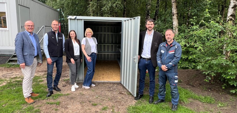 Schulverwaltung und Schulleitung entschieden sich gemeinsam dafür, einen geeigneten Container zu beschaffen. Da sich das Emsdettener Unternehmen BOS Best Of Steel GmbH, das Schnellbau-Container aus Stahl herstellt, in direkter Nachbarschaft der Schule befindet, wurde dort um die Erstellung eines Angebotes gebeten. Im Rahmen ihres ehrenamtlichen Engagements für die Stadt Emsdetten machte die BOS allerdings kein Angebot – sondern sponserte den Container als Nachbarschaftsdienst.