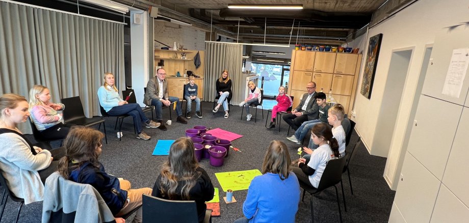 Bereits zur Vorbereitung auf die Müllsammel-Aktion hatten sich die Kinder mit dem Thema „Müll“ genauer auseinandergesetzt, sodass sich alle schnell einig waren: „Es sollte mehr Werbung für die Mülltonne geben!“. Ihre Ideen, wie diese Werbung aussehen könnte, setzten sie dabei kreativ auf bunten Plakaten und sogar in einer ersten kleinen Werbespot-Vorstellung um. Gemeinsam mit der Verwaltungsspitze überlegten sie anschließend, welche Tricks und Hinweise zusätzlich helfen könnten, damit der Müll auch dort landet, wo er hingehört.