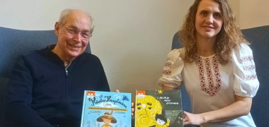 Am Samstag, den 20. April, findet um 11.00 Uhr das nächste deutsch-ukrainische Bilderbuchkino für Klein und Groß von 4 bis 99 Jahren mit dem ehrenamtlichen Vorlesepaten Wolfgang Huber und der ukrainisch-sprachigen Vorleserin Nataliia Momot statt.