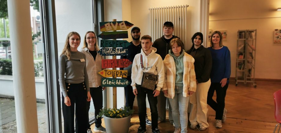 Die Jugendlichen haben die Eindrücke, Erfahrungen und Ergebnisse der Woche in einem kreativen Prozess festgehalten – daraus ist ein „Demokratiewegweiser“ entstanden, der nun im Lesecafé der Stadtbibliothek Emsdetten einen Platz gefunden hat.