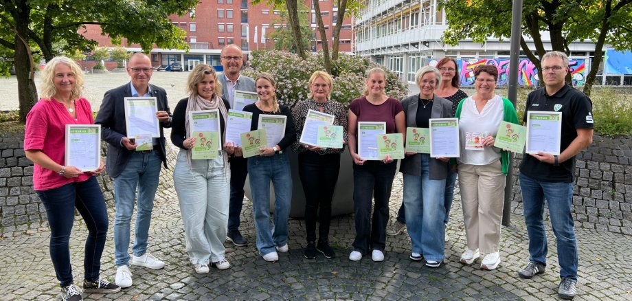 In den letzten 20 Jahren hat der Kreissportbund im Kreis Steinfurt bereits mehr als 70 Kindergärten mit dem Siegel „Bewegungskindergarten“ ausgezeichnet und die dazu kooperierenden „kinderfreundlichen Sportvereine“ – in Emsdetten der TVE - geehrt. Seit 2023 erhalten auch Kindertagespflegepersonen das Gütesiegel „Bewegte Kindertagespflege“. Dieses Jahr waren zum ersten Mal auch Tagesmütter aus Emsdetten dabei, die in Kooperation mit dem TV Emsdetten die Qualifizierung zur „Anerkannten Bewegungs-Kindertagespflegestelle“ absolviert hatten. Sie alle haben die Fortbildung des Kreissportbundes durchlaufen und Bewegungsförderung in ihrem pädagogischen Konzept verankert. Die beteiligten Tagesmütter erhielten bereits am Mittwoch, 03. September 2025, auf der Soiree zum 23. Weltkindertag eine Urkunde in Form eines Gütesiegels.