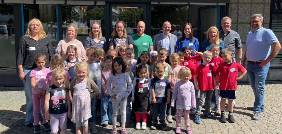 Anschließend besuchten die Kita-Kinder verschiedene Abteilungen des Rathauses, um zu erfahren, welche Aufgaben die Mitarbeitenden ausüben. Danach lernten sie Bürgermeister Oliver Kellner kennen, durften ihm Fragen stellen und Wünsche äußern. So fragte ein Mädchen, ob ihm seine Arbeit als Bürgermeister denn Spaß mache – die Antwort war ein klares „Ja“. Ein Kind wünschte sich einen Kletterwald, eines eine Waldmurmelbahn, eines mehr Spielplätze und mehr Mülleimer. Doch auch pragmatische Wünsche wurden geäußert – beispielsweise, dass Spielwaren Bockel bleiben soll.