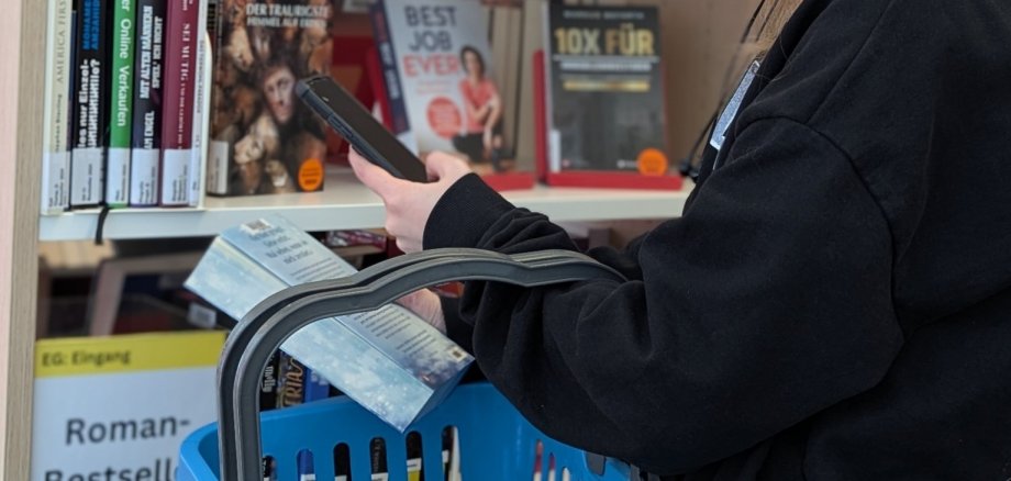 Die neue Bibliothekssoftware ist an eine App gekoppelt und ermöglicht die Ausleihe mit digitalem Bibliotheksausweis direkt am Regal, wo das Medium dann einfach eingescannt und mitgenommen werden kann.