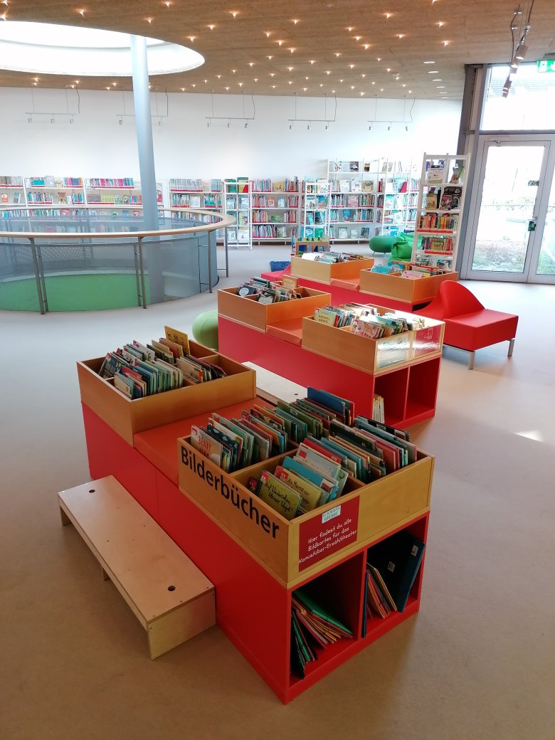 Blick in die Kinderbibliothek mit Bilderbuchbereich
