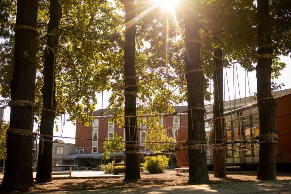 Hier können Kinder ihre Geschicklichkeit und Höhentauglichkeit austesten. Durch die zahlreichen Bäume ist der Seilgarten im Sommer ein besonders schattiges Plätzen.