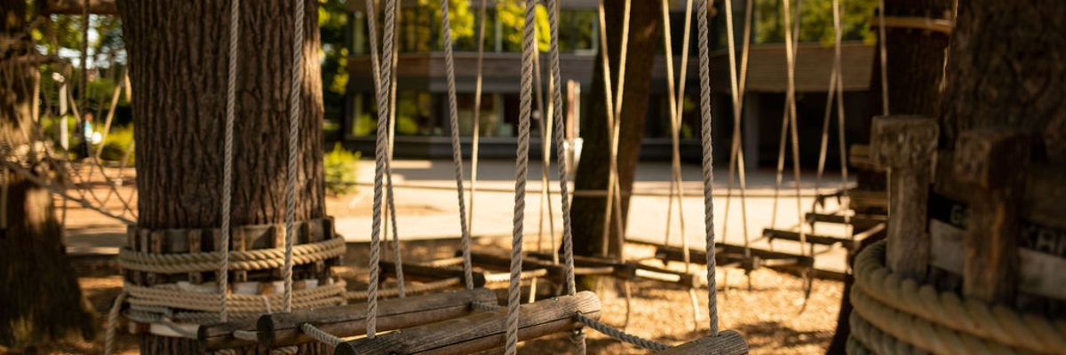 Der Seilgarten ist ein für Grundschulkinder und ältere Kinder interessant gestaltetes Balanciererlebnis. Der angelegte Seilgarten verbindet verschiedene Elemente unter den Bäumen miteinander.