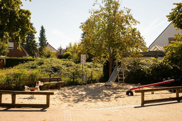 Der Spielplatz bietet im Wohngebiet ein Spielmöglichkeit für die kleinen Kinder. Der kleine Spielplatz bietet sich an für einen Zwischenstopp bei einem gemeinsamen Spaziergang.