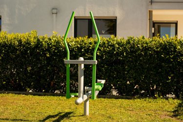 Der Spielplatz liegt zentral im Baugebiet und ist über mehrere Zuwegungen gut zu erreichen. Er ist offen hell und lichtdurchflutet. Neben Spielgeräten für Kitakinder und Grundschulkinder finden sich hier auch Bewegungsgeräte, die von Erwachsenen genutzt werden können. Ein Spielplatz für die ganze Familie.