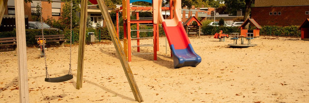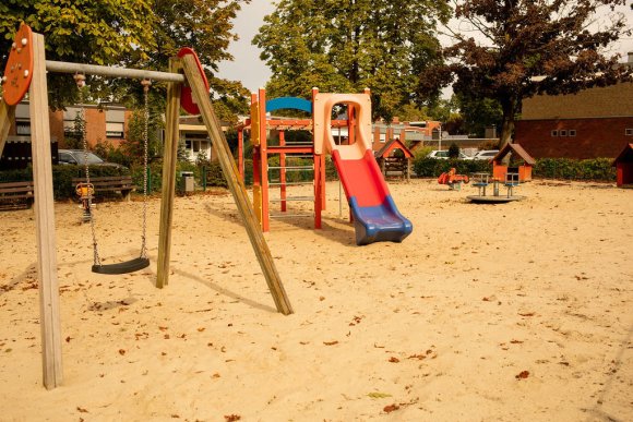 Der nahgelegene Spielplatz im Wohngebiet bietet mit der großen Sandfläche ein Paradies zum Sandburgenbauen. Die verschiedenen Spielhäuser laden die Kinder in heller und freundlicher Atmosphäre zum Phantasiespiel ein.