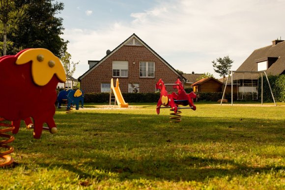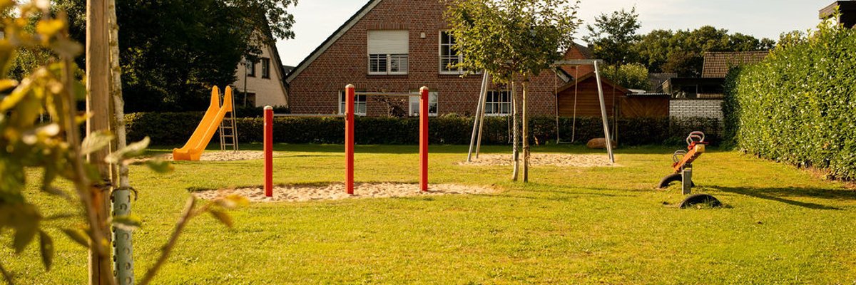 Dieser mittelgroße Spielplatz ist mit viel Licht bietet einen Mix aus Grün-und Sandfläche zum Spielen und Toben. Kleinere und größere Kinder finden verschiedene Spielmöglichkeiten mit verschieden hohen Turnstangen oder unterschiedlichen Wipptieren.
