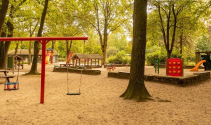 Von allen Kindern und Familien geliebte weitläufige und gut ausgestattete Spielfläche im Stadtpark mit seinem kleinen Tierpark, einem Ententeich, einer 18-Loch-Minigolfanlage sowie mehreren Tischtennisplatten.
