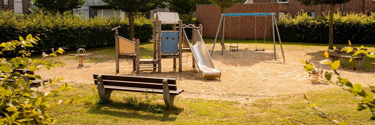 Klettern, Schaukeln, Wippen und im Sand spielen. Perfekt für kleine Füße auf kurzen Wegen aus dem umliegenden Wohnquartier.
