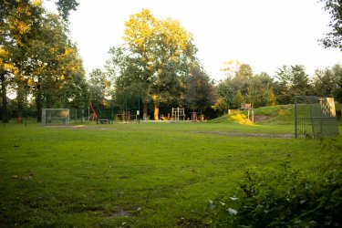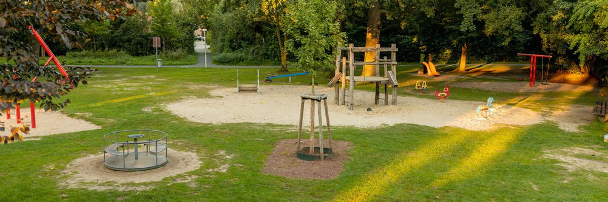 Ein großer Spielplatz im Grünen, weit abseits des Verkehrs mit einem umfangreichen, abwechslungsreichen Spielangebot, einem neuen spannenden Klettergerüst, einer Seilbahn und Sitzgruppen zum Verweilen und Picknicken. Dazu ein Ballspielplatz. Einfach Großartig für Kinder jeden Alters.