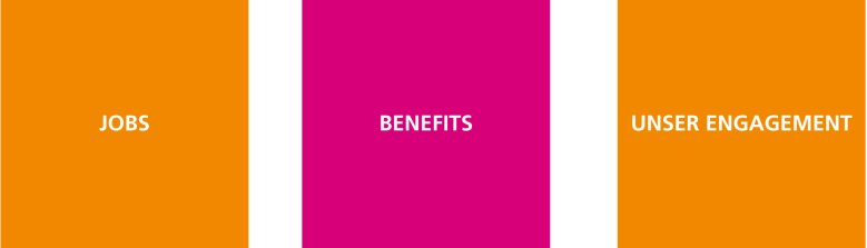 Du willst mehr darüber wissen, was du von uns als Arbeitgeberin erwarten darfst? Schau dir unsere Benefits und unser Engagement an. Außerdem findest du unter Arbeitsbereiche auch Informationen darüber, was dich an den einzelnen Arbeitsplätzen erwartet.