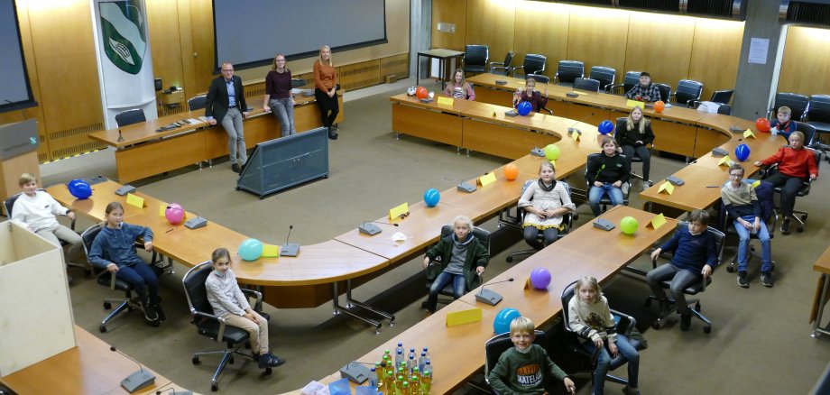 Nach einer kurzen Vorstellungsrunde hatten die Kinder die Möglichkeit, Bürgermeister Oliver Kellner Fragen zum Thema „Was macht ein Bürgermeister?“ zu stellen. Gemeinsam überlegte sich der Kinderrat, mit welchen Themen man sich zuerst beschäftigen möchte. Dazu wurden alle Themenvorschläge akribisch gesammelt. Nach einer anschließenden Spielpause auf Hof Deitmar ging es zurück in den Ratssaal, wo durch eine geheime Wahl die zukünftigen Themenschwerpunkte festgelegt wurden.