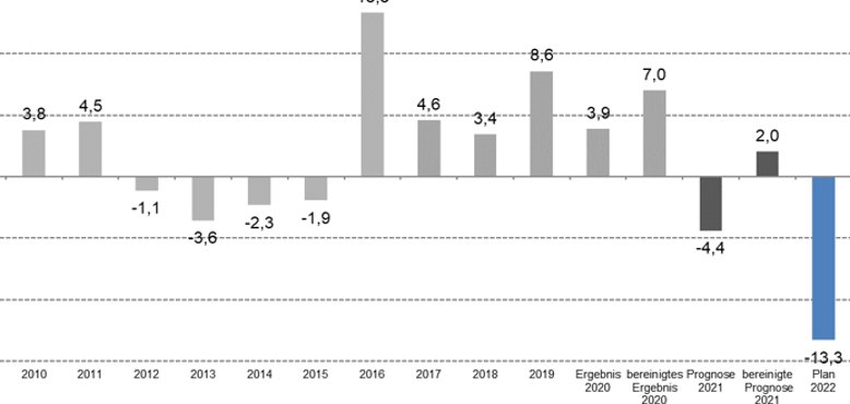 Der Haushalt 2022 sieht aktuell 105,9 Mio. Euro Ausgaben und 92,6 Mio. Euro Einnahmen sowie rund 31 Mio. Euro an Investitionen vor. Die Gründe für das hohe Defizit von über 13 Mio. Euro sind dabei sowohl auf der Einnahmen- als auch auf der Ausgabenseite zu finden.