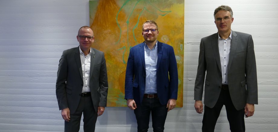 Auf dem Foto v.l.n.r.: Bürgermeister Oliver Kellner, Philipp Bunse (Fachdienstleiter Stadtentwicklung und Umwelt) sowie Martin Dörtelmann (Technischer Beigeordneter)
