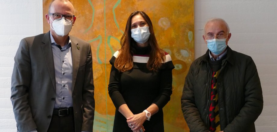 Auf dem Bild v.l.n.r.: Oliver Kellner (Bürgermeister der Stadt Emsdetten), Lidia Nabais (Portugiesische Generalkonsulin in Deutschland), Francisco Sendas (Beirat für Integration und Migration der Stadt Emsdetten)