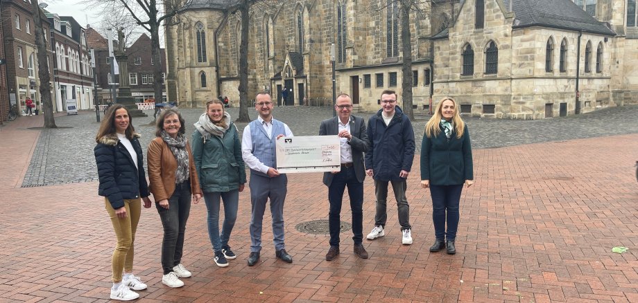 Auf dem Bild v.l.n.r.: Andrea Hellwig, Beate Reckert, Katrin Weßeler, Heiko Kraft, Bürgermeister Oliver Kellner, Luis Hemesath, Silvana Döhring