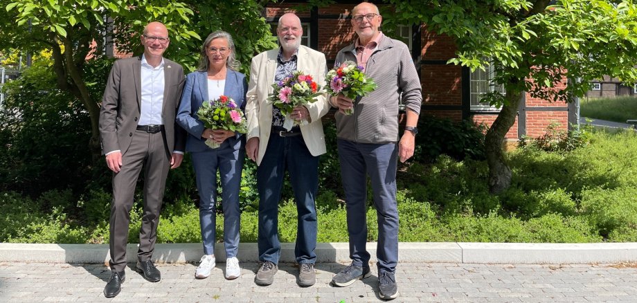 Auf dem Foto v.l.n.r.: Bürgermeister Oliver Kellner, Anne Abelmann, Karl-Heinz Mense und Gregor Kattenbeck