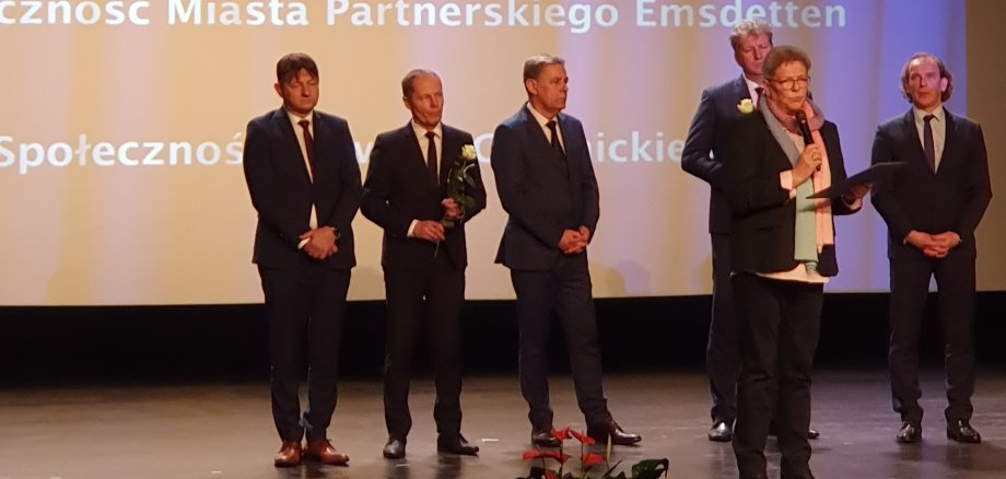 Während der Veranstaltung „Dokonia Roku 2022“ wurden besondere Leistungen aus dem Jahr 2022 in unterschiedlichen Kategorien geehrt. Eine Jury, unter anderem bestehend aus Landrat, Gemeindedirektor sowie Chojnices Bürgermeister Arseniusz Finster, hatte alle Nominierten für deren großartige Leistungen im letzten Jahr vorgeschlagen. Die Gemeinschaft der Partnerstadt Emsdetten wurde aufgrund der großen Hilfsbereitschaft im Zuge des Krieges in der Ukraine in der Kategorie „Philanthrop“, also „Menschenfreund“, nominiert.