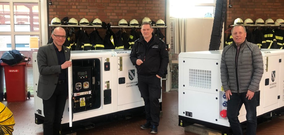 Auf dem Bild v.l.n.r.: Bürgermeister Oliver Kellner, Willi Kemper (Sachgebietsleiter Brandschutz der Stadt Emsdetten) und Manfred Wietkamp (Leiter des Fachdienstes Bürgerservice, Ordnung und Soziale Leistungen der Stadt Emsdetten)