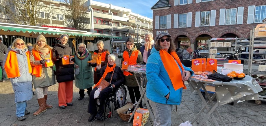 Aktionen im Rahmen der Orange Days in Emsdetten: Aufklärungsarbeit auf dem Wochenmarkt und in der Stadtbibliothek